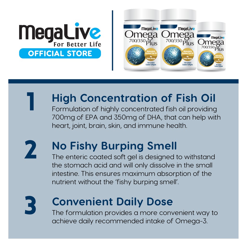 Omega fish oil is one of the most commonly consumed dietary supplements. MegaLive Omega 700350 Enteric Coated Softgel Promo Pack. Beli MEGALIVE Omega Fish Oil 600300 100 x 2 30 Capsules di TanziaStore.